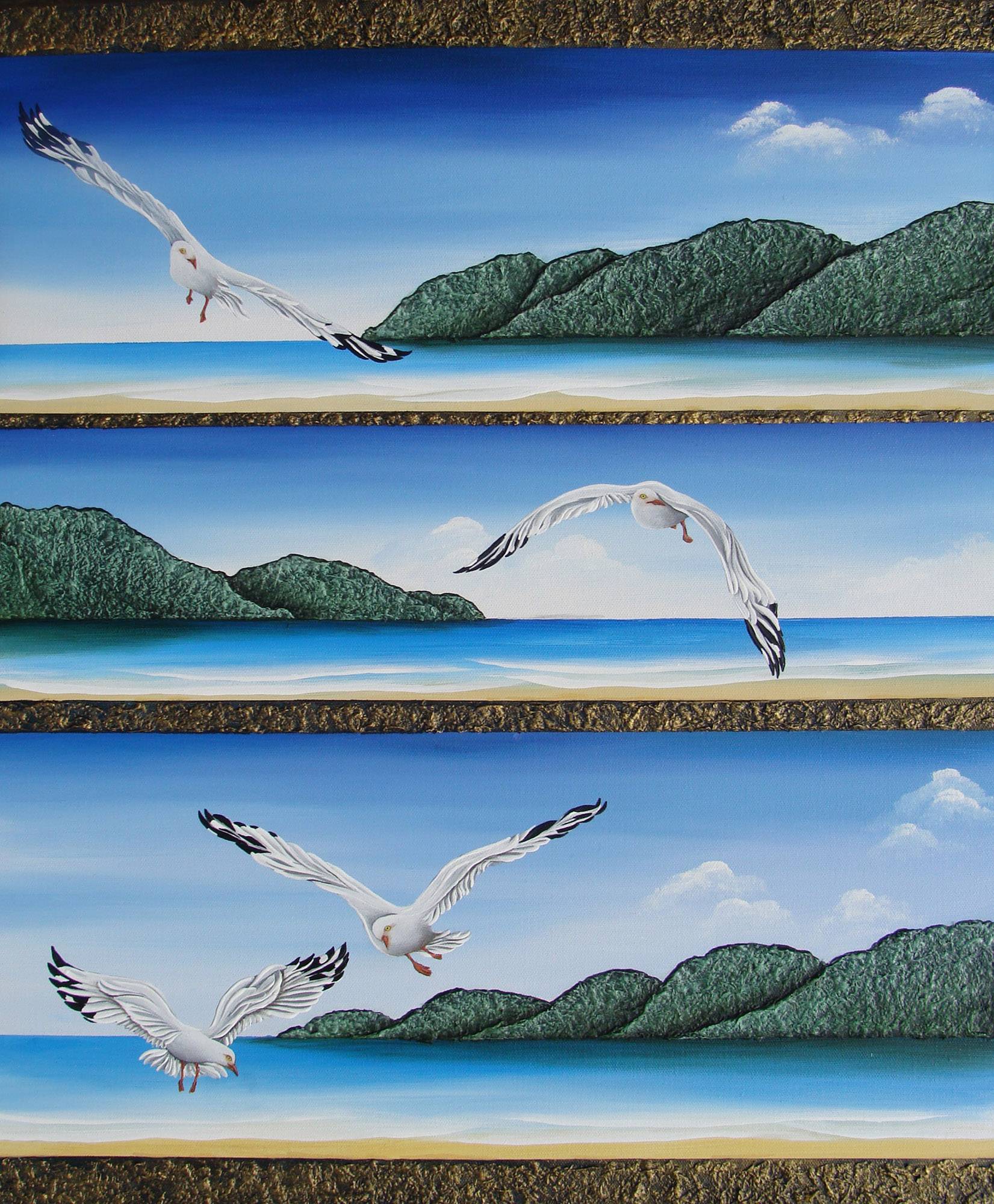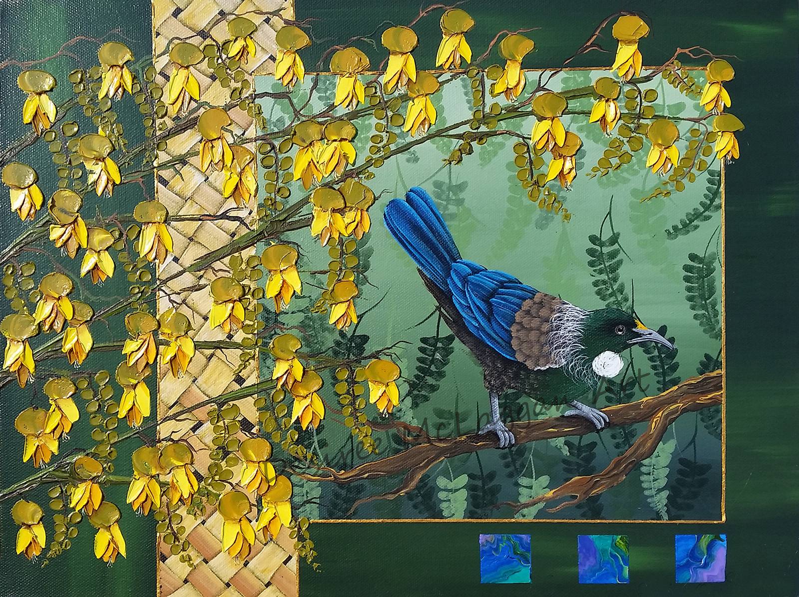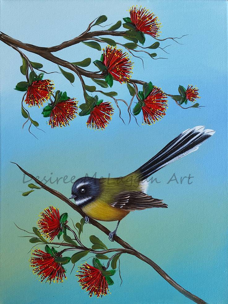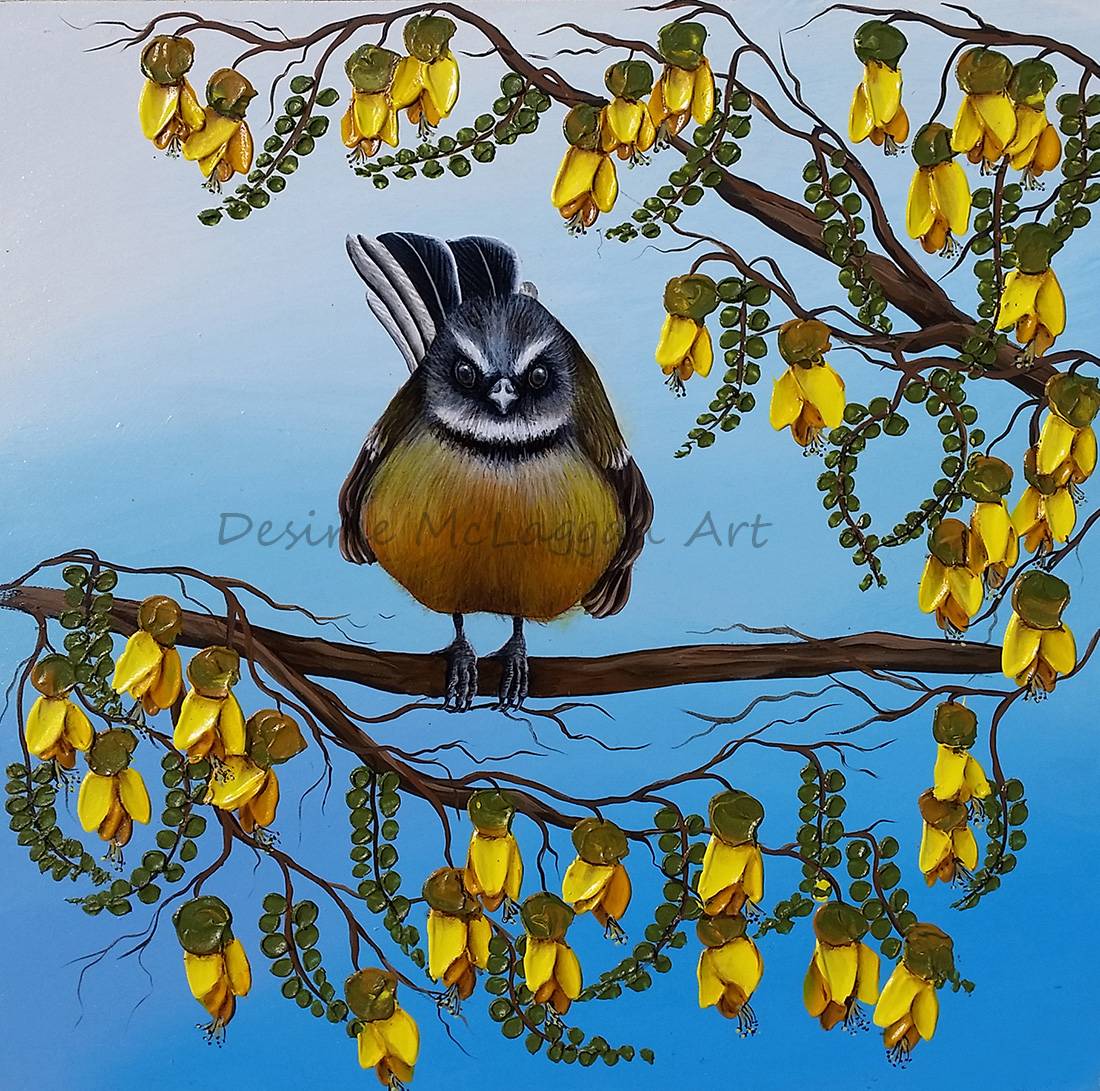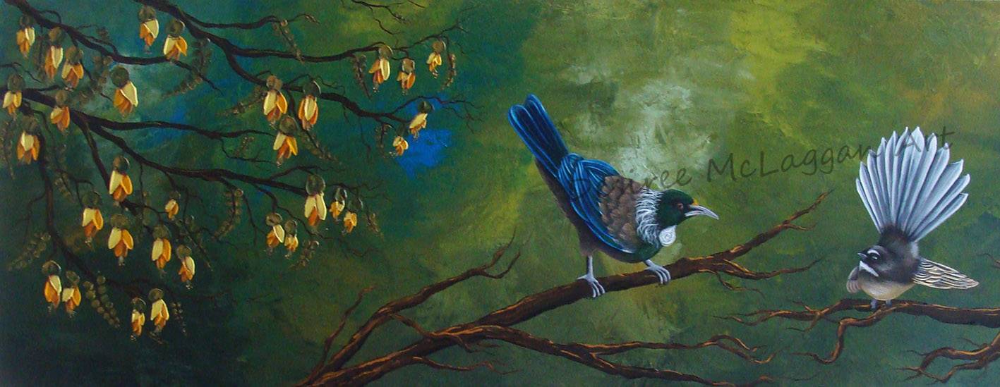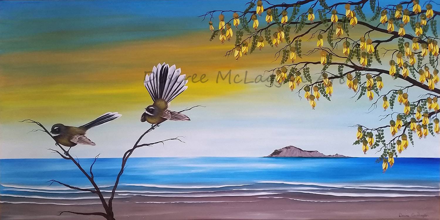 2Two Fantails in Kowhai Tree - Napier - 100cmx50cm