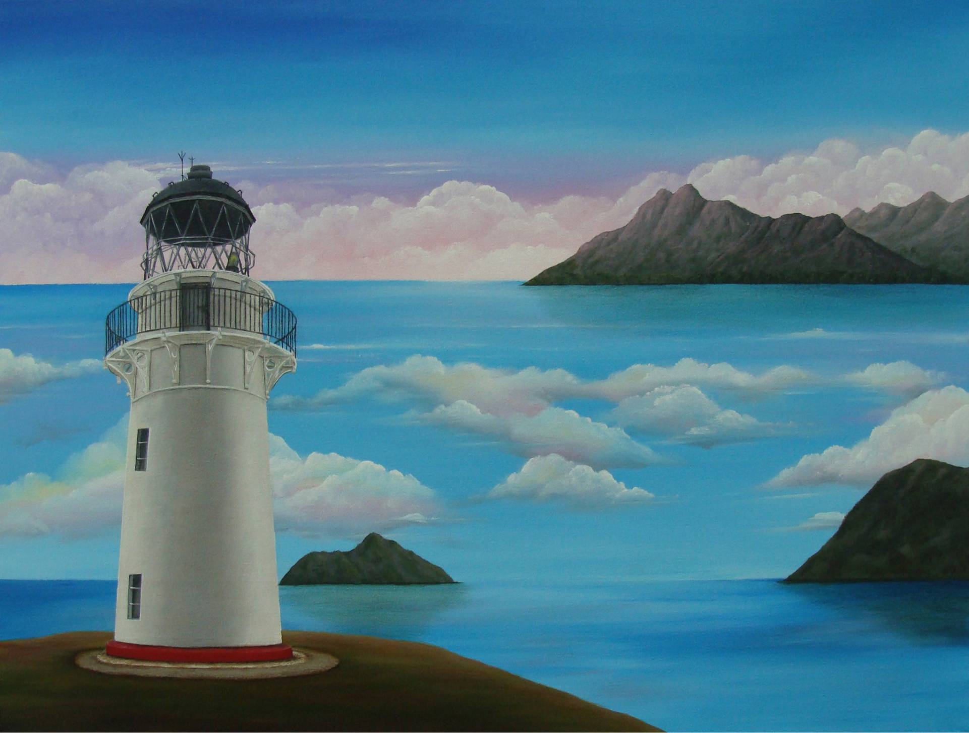 Faintail with view of Tahua (Major Island), Waihi - 40cmx30cm